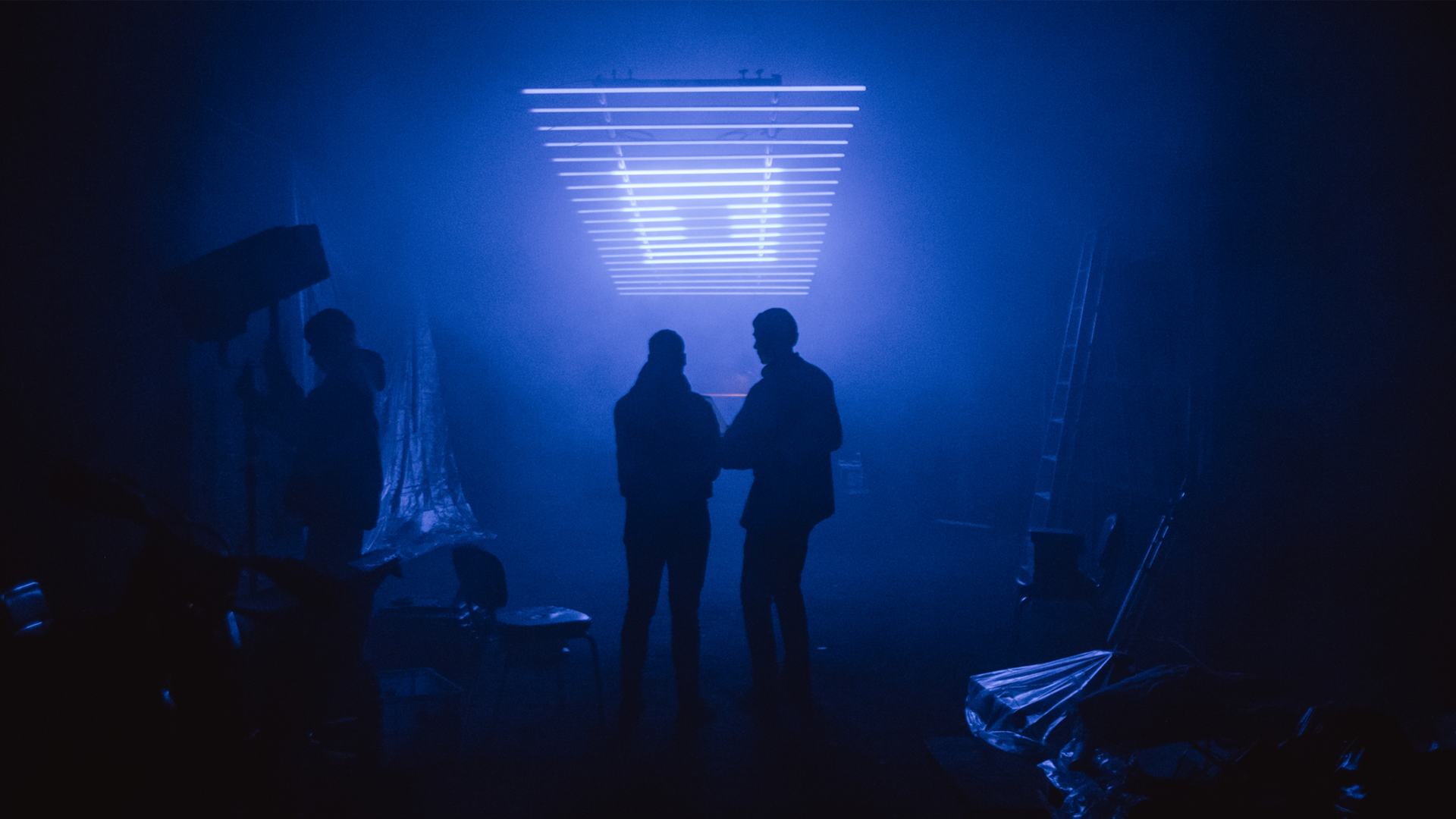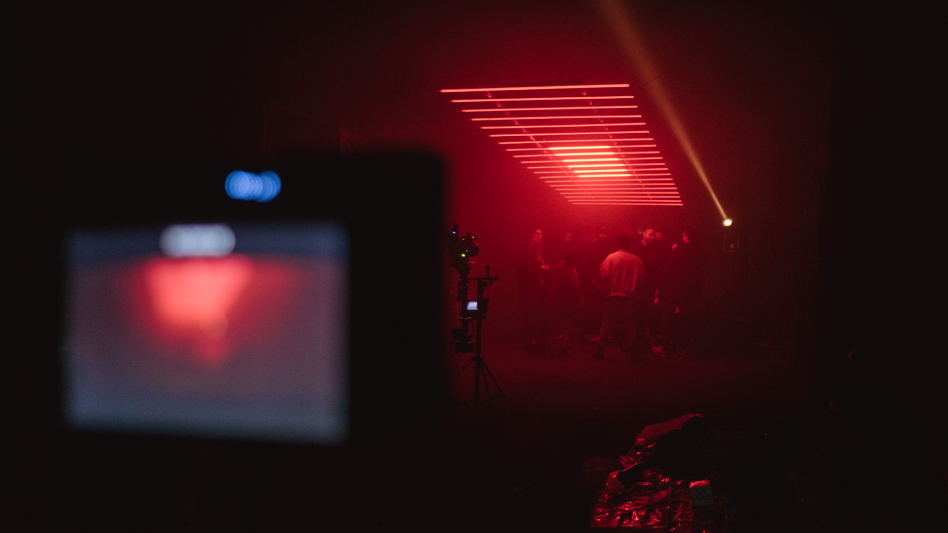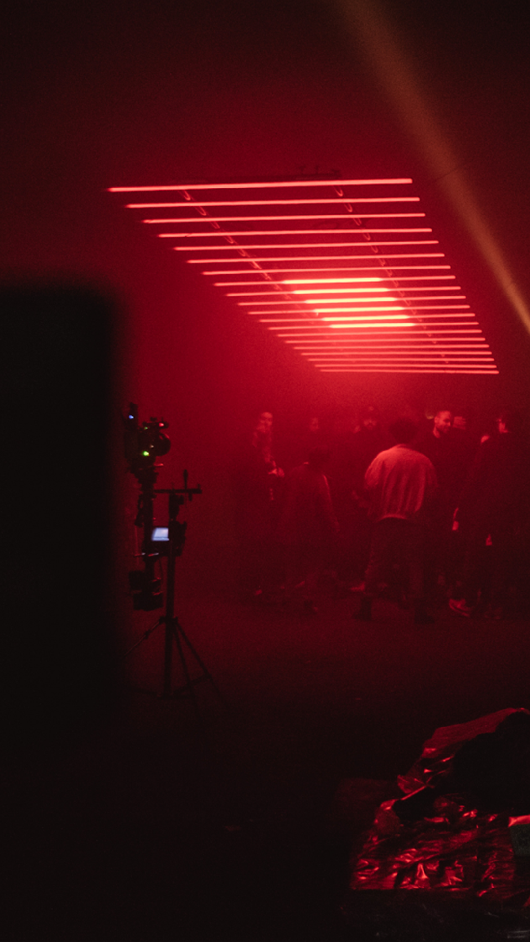Lichtinstallation in Position gebracht werden. Die verlassene Lagerhalle bietet viel Platz und kreative Freiheit. Am Abend soll hier ein DJ die düsteren Räume zum Leben erwecken. Die geplante Szene spielt auf einer Rave. Während unsere zwei verliebten Darsteller in der eisigen Kälte performen, bewegen sich unsere Partygäste entsprechend zum Bass. Gegen 5 Uhr nachts ist die Party vorbei. Durchgefroren und müde, aber dennoch benebelt von der guten Stimmung fiebern wir auch die letzten Drehtage hin.