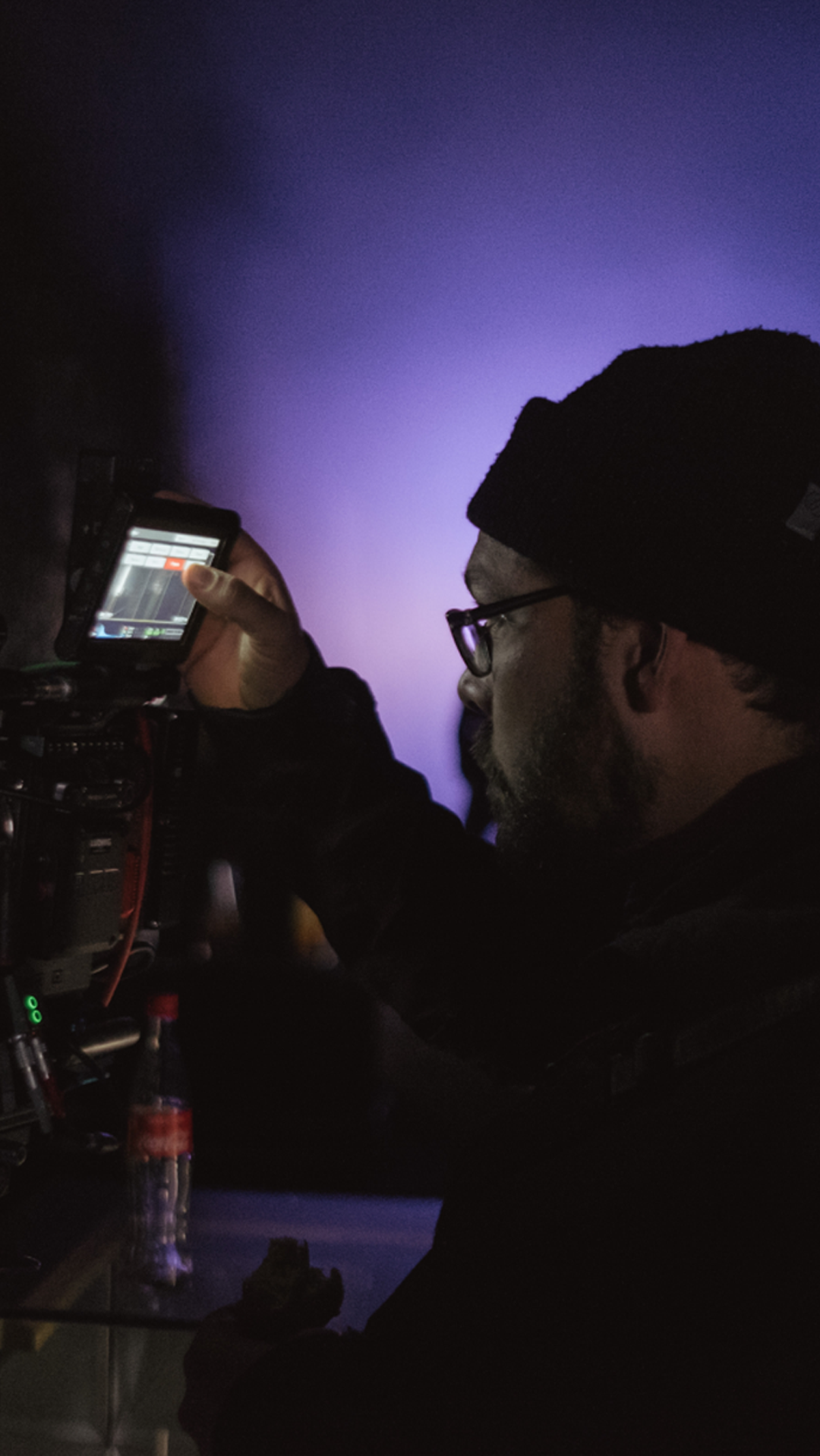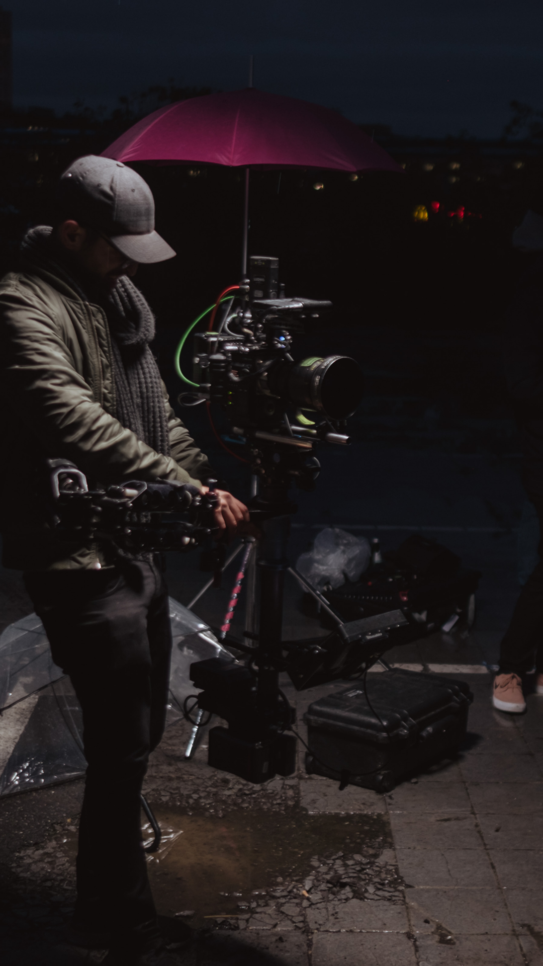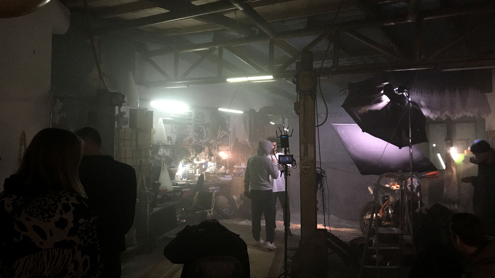 Lichtinstallation in Position gebracht werden. Die verlassene Lagerhalle bietet viel Platz und kreative Freiheit. Am Abend soll hier ein DJ die düsteren Räume zum Leben erwecken. Die geplante Szene spielt auf einer Rave. Während unsere zwei verliebten Darsteller in der eisigen Kälte performen, bewegen sich unsere Partygäste entsprechend zum Bass. Gegen 5 Uhr nachts ist die Party vorbei. Durchgefroren und müde, aber dennoch benebelt von der guten Stimmung fiebern wir auch die letzten Drehtage hin.