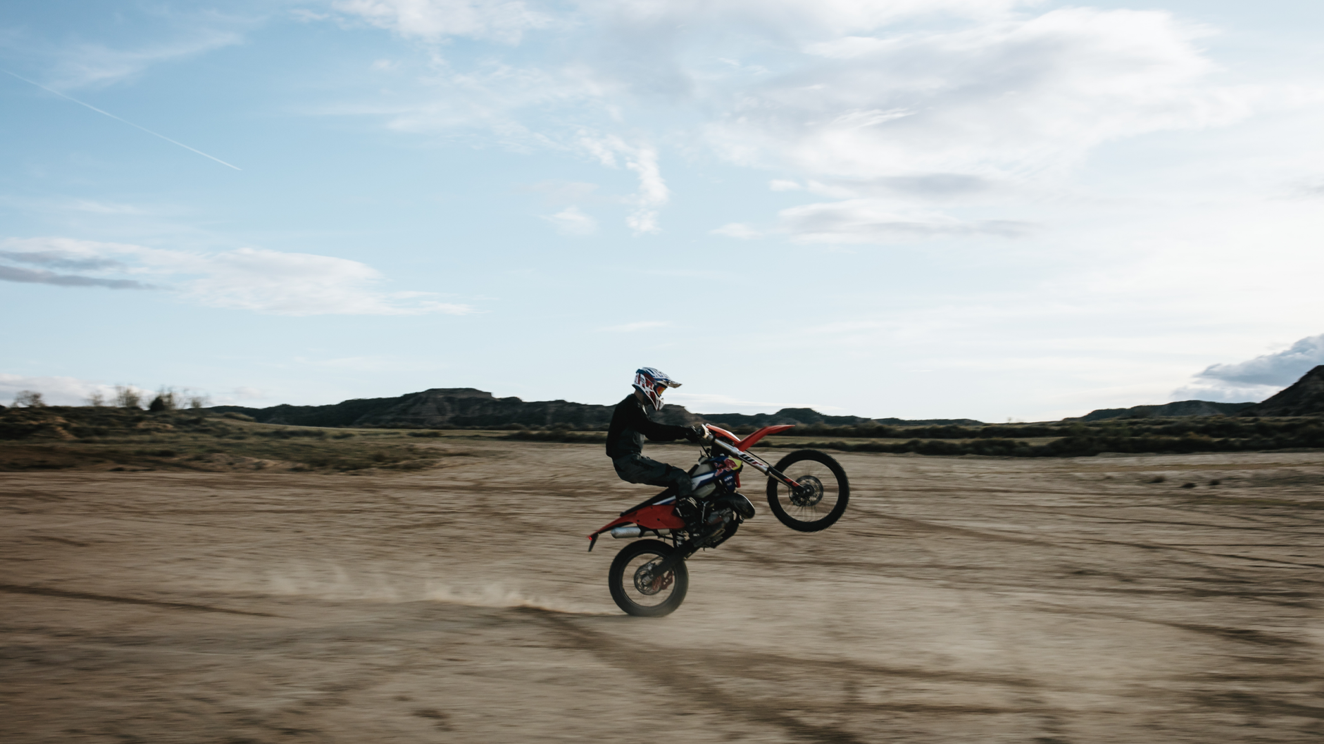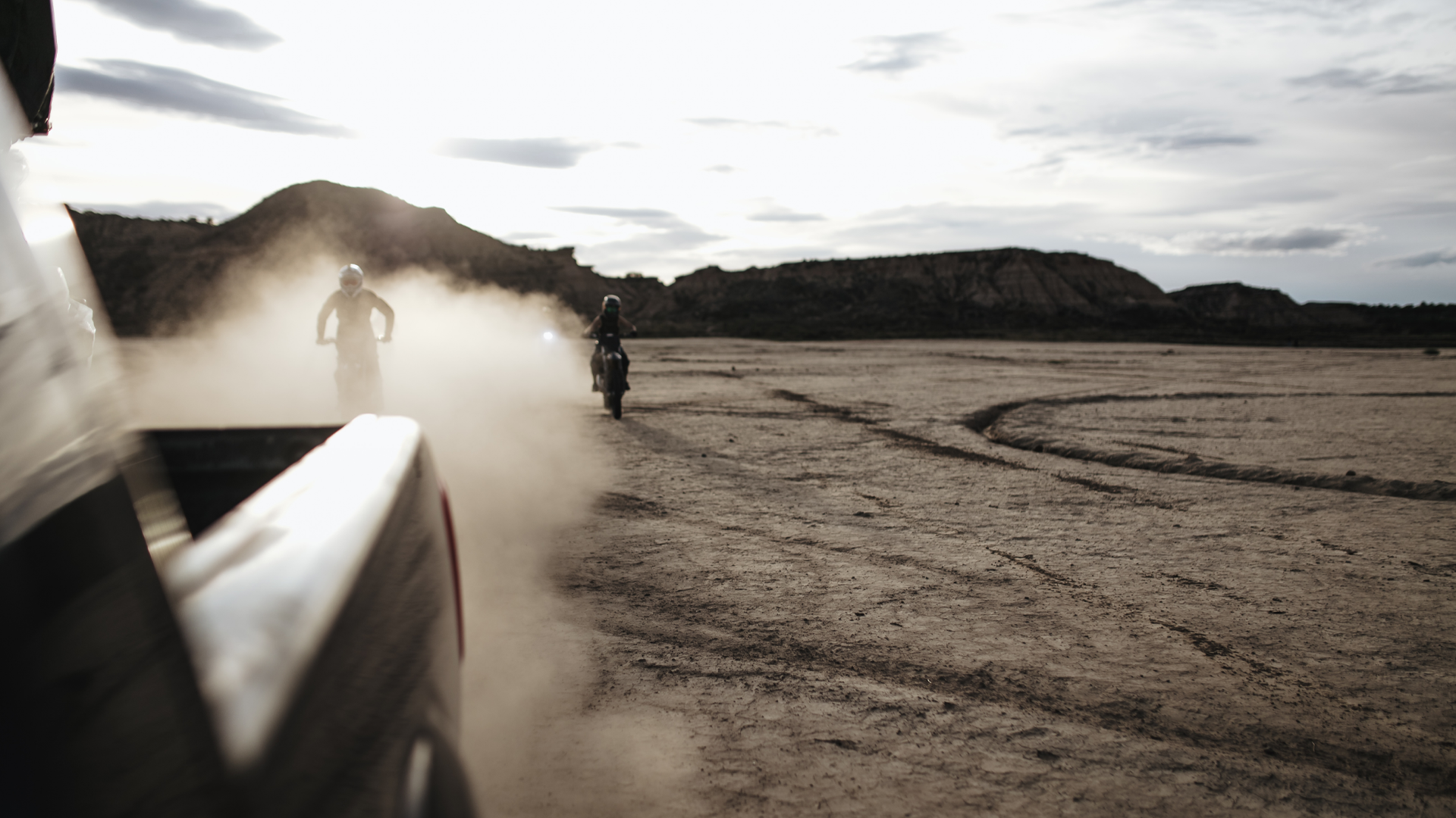 Vier Motorradfahrer in einer Wüste, die sich gemeinsam auf eine Reise in das Unbekannte begeben. Die vier Fahrer geben alles. Manöver, Sprünge, Hillclimbs. Selbst der Fahrer des Black Car Kamerawagens ist dabei ins Schwitzen gekommen, denn auch die Sandwolken haben ihm das Leben nicht leichter gemacht – die Aufnahmen sind dafür jedoch umso schöner geworden.