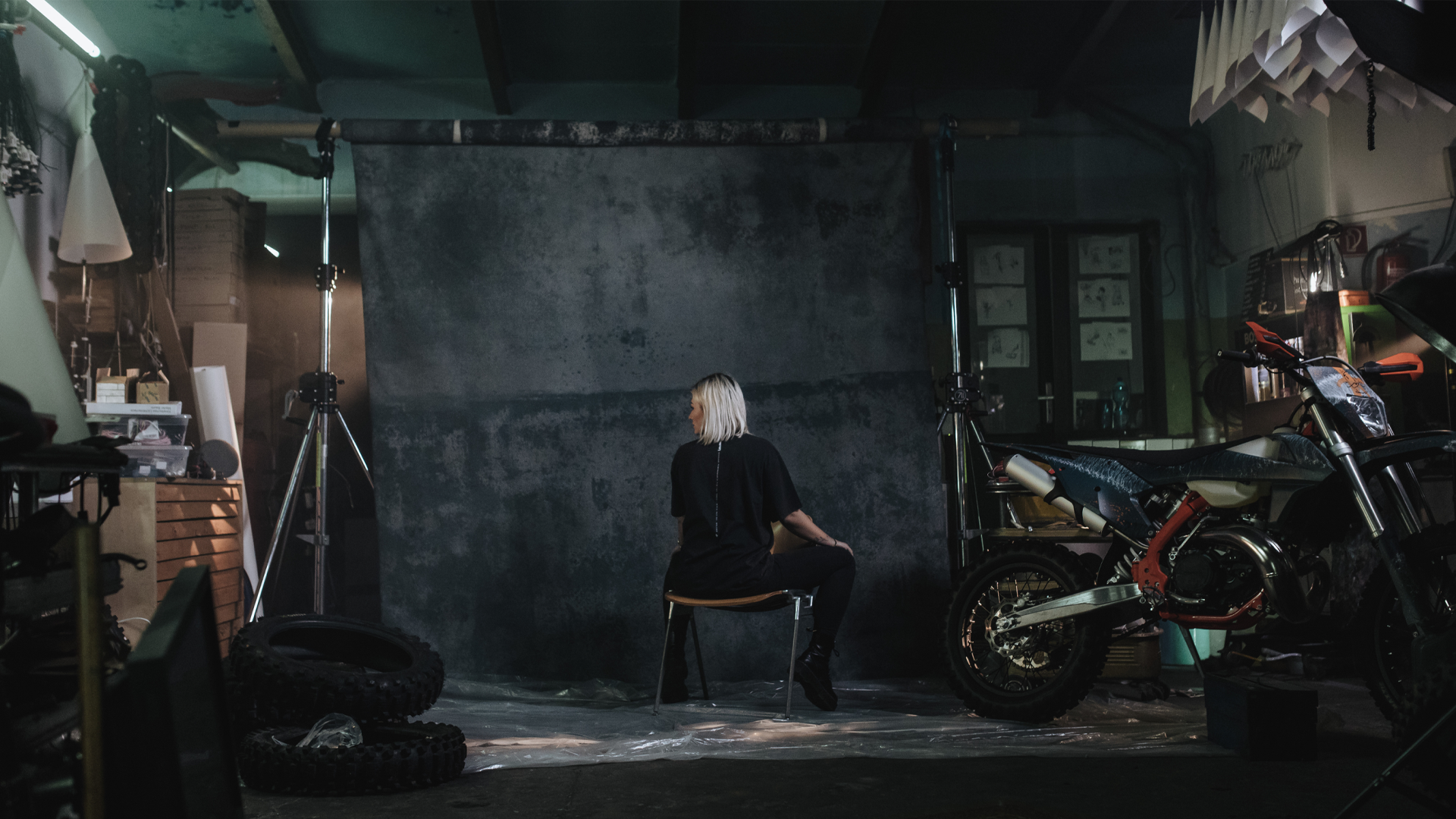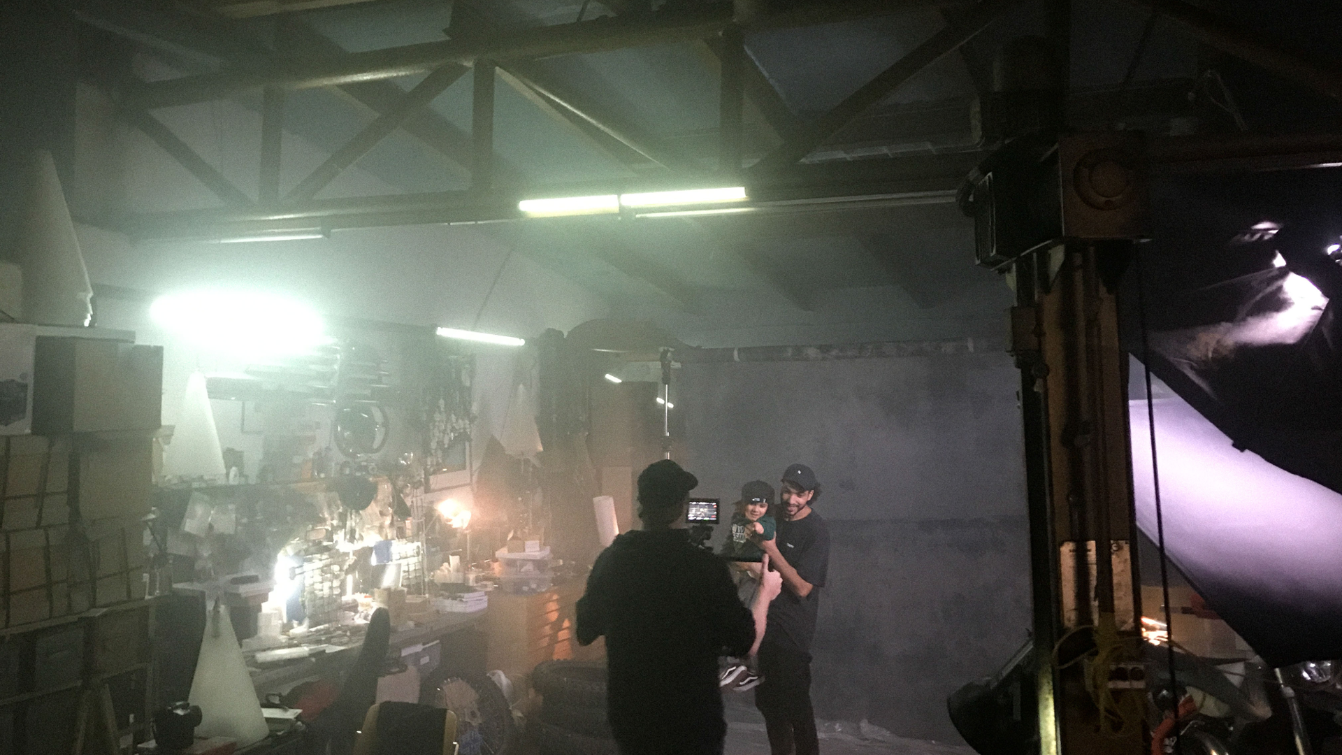 Locationwechsel. Aber Berlin sitzt uns immer noch in den Knochen. Zwischen verrosteten Baustrahlern, Ölfässern und wirrem Gerümpel geben unsere Models alles. In der spanischen Wüste begonnen, enden wir unsere Dreharbeiten nun in einer kleinen Düsseldorfer Werkstatt.