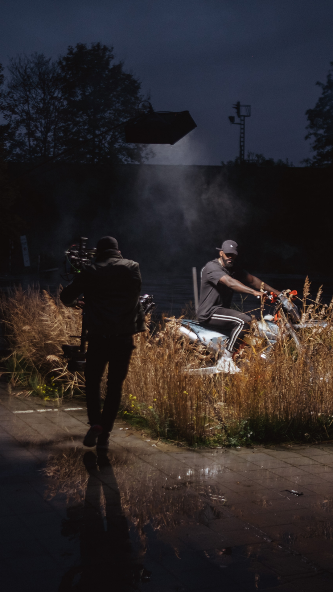 Insgesamt haben wir fünf verschiedene Szenen erarbeitet. Alle stehen zentral im Fokus des Gedankens „Origin“, der Ursprung. Etwas entsteht, etwas wird, etwas beginnt zu wachsen. Deshalb thematisieren wir das Anfangen, aber auch das Scheitern, das sich immer wieder im Leben zeigt. Mit dem Launch von Ripin Racing vermitteln wir die Gefühle des Auftriebs, der Rebellion und Leidenschaft. Entschlossen wird ein neuer Weg in das Unbekannte gewagt.